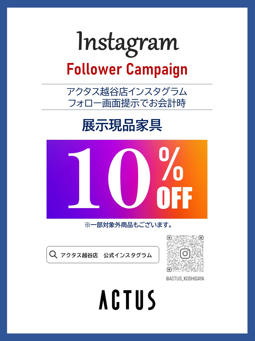 この期間中、アクタスコンテナ越谷店のInstagramのフォロー画面をご提示で、
